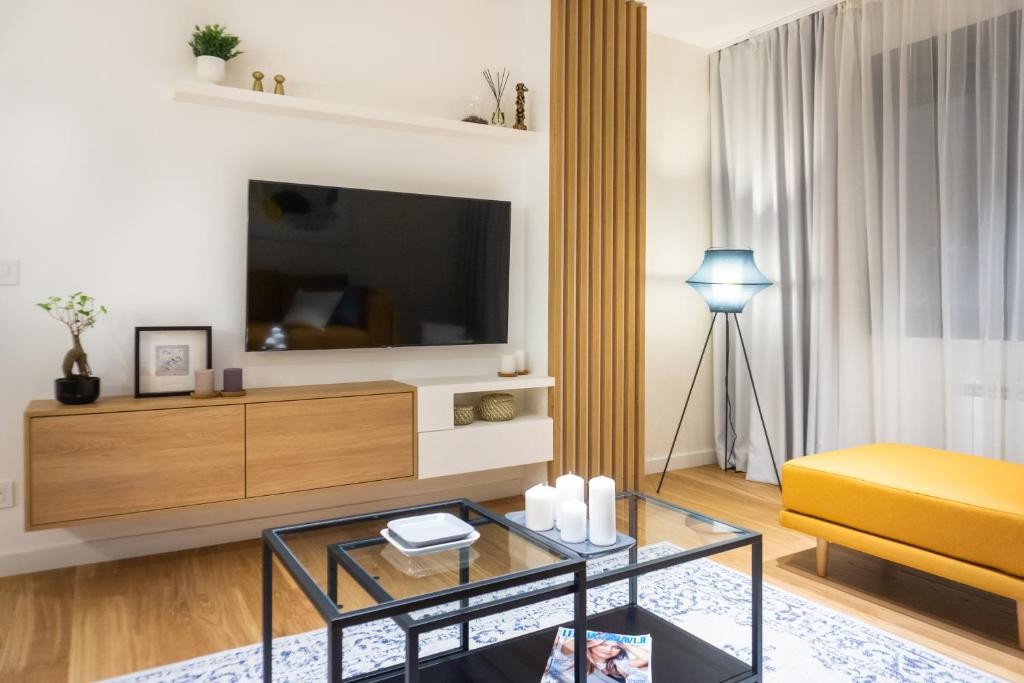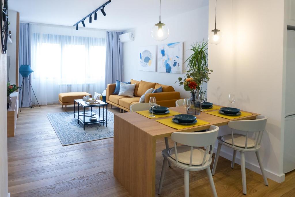 Boasting a private entrance, this air-conditioned apartment features 1 living room, 1 separate bedroom and 1 bathroom with a walk-in shower and a hairdryer. In the fully equipped kitchen, guests will find a stovetop, a refrigerator, a dishwasher and kitchenware. This apartment has a washing machine, soundproof walls, flat-screen TV with cable channels, as well as chocolate for guests. The unit has 2 beds.