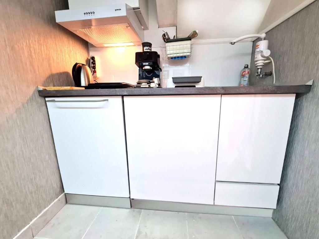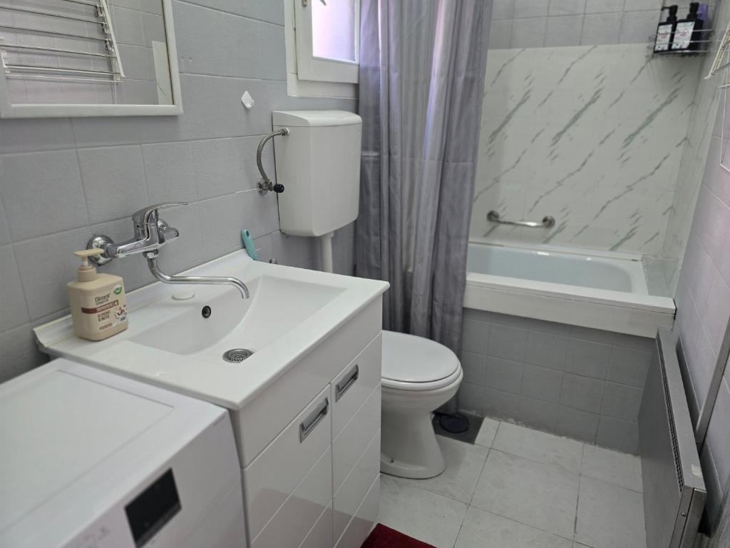 Boasting a private entrance, this air-conditioned apartment features a kitchen, 1 bedroom and 1 bathroom with a bath and a shower. Guests can make meals in the fully equipped kitchen that features a stovetop, a refrigerator and kitchenware. The apartment has parquet floors, a seating area with a flat-screen TV, a washing machine, soundproof walls, as well as a tea and coffee maker. The unit has 2 beds.