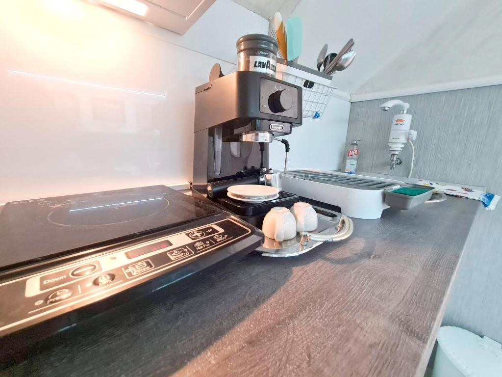 čajna kuhinja, frižider, mašina za pranje veša, kuhinja, električno kuvalo, posuđe, ploča za kuvanje, aparat za kafu, sto za ručavanje, čaše za vino, sredstva za čišćenje