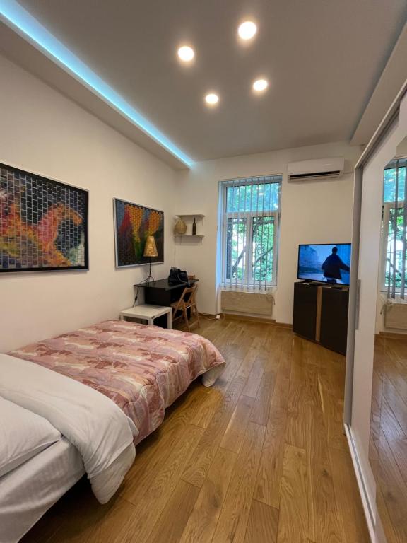 The apartment's kitchen, which features a refrigerator, is available for cooking and storing food. This apartment is air-conditioned and has a flat-screen TV with cable channels, a washing machine, parquet floors and heating. The unit has 1 bed.