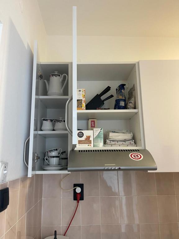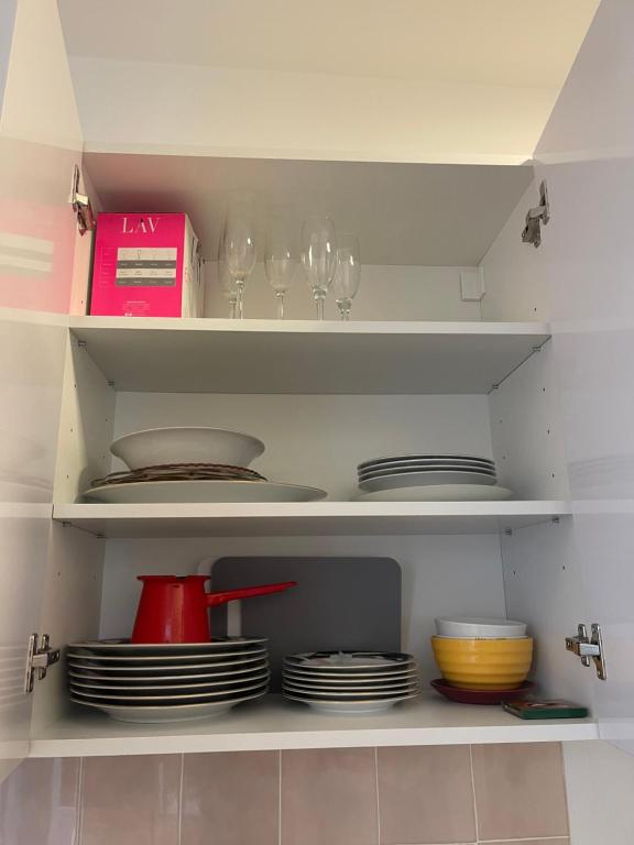čajna kuhinja, frižider, mašina za pranje veša, električno kuvalo, posuđe, rerna, ploča za kuvanje, toster, sredstva za čišćenje, aparat za kafu, sto za ručavanje, čaše za vino
