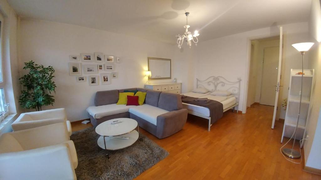 Featuring 1 bedroom, this apartment offers 1 bathroom with a hairdryer, a seating area and terrace where you can relax. Guests can make meals in the kitchen that is equipped with a stovetop, a refrigerator, kitchenware and an oven. The air-conditioned apartment provides a flat-screen TV with cable channels, a washing machine, soundproof walls, a dining area as well as garden views. The unit has 3 beds.