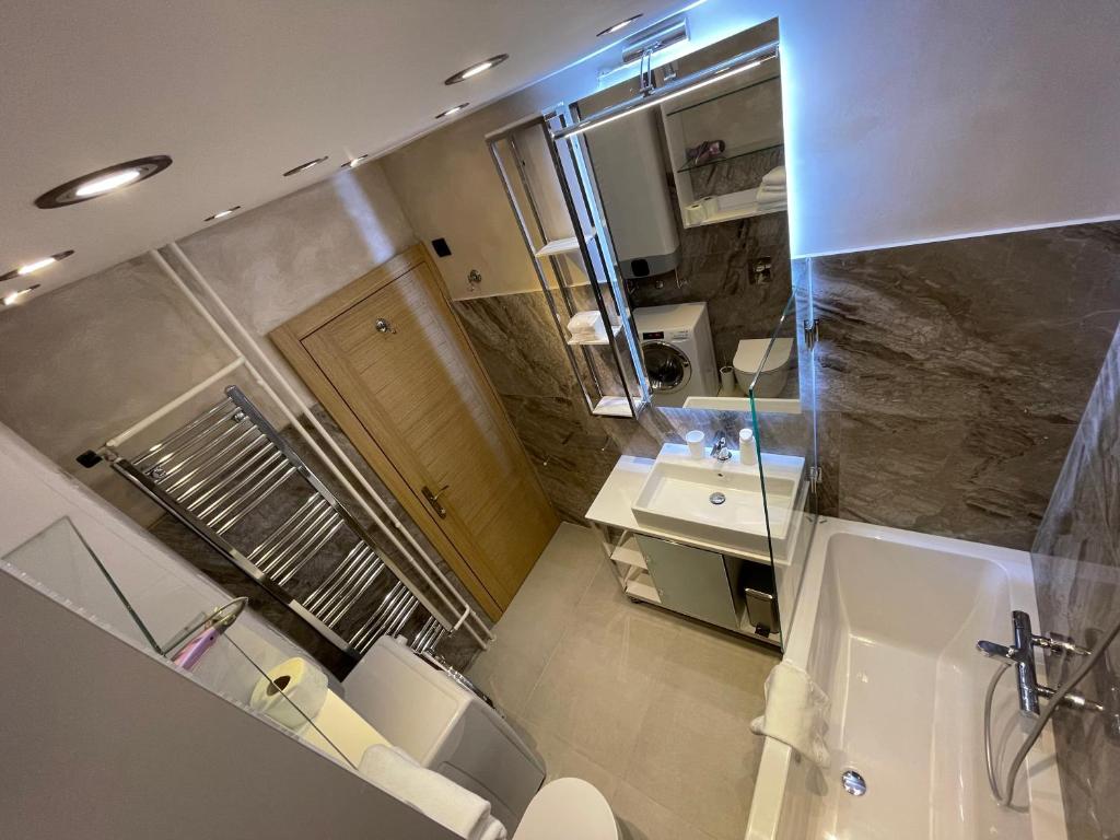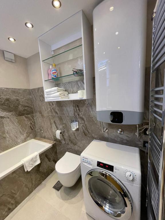 This spacious apartment includes 1 living room, 2 separate bedrooms and 2 bathrooms with a walk-in shower and free toiletries. In the fully equipped kitchen, guests will find a stovetop, a refrigerator, a dishwasher and kitchenware. The apartment has parquet floors, a seating area with a flat-screen TV with cable channels, air conditioning, a washing machine, as well as a dining area. The unit has 4 beds.