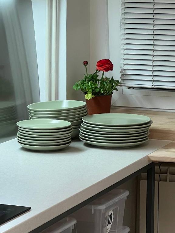 frižider, mikrotalasna rerna, mašina za pranje veša, kuhinja, električno kuvalo, posuđe, mašina za sušenje veša, ploča za kuvanje, toster, sredstva za čišćenje