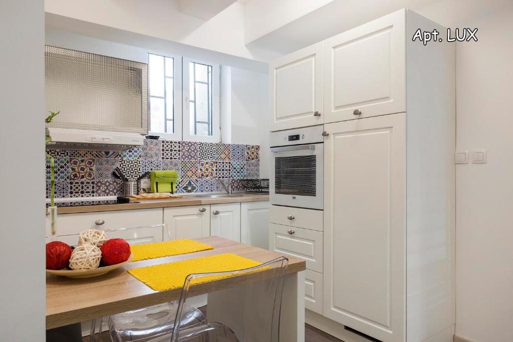 frižider, mikrotalasna rerna, mašina za pranje veša, kuhinja, električno kuvalo, posuđe, mašina za sušenje veša, rerna, ploča za kuvanje, sredstva za čišćenje, sto za ručavanje, čaše za vino