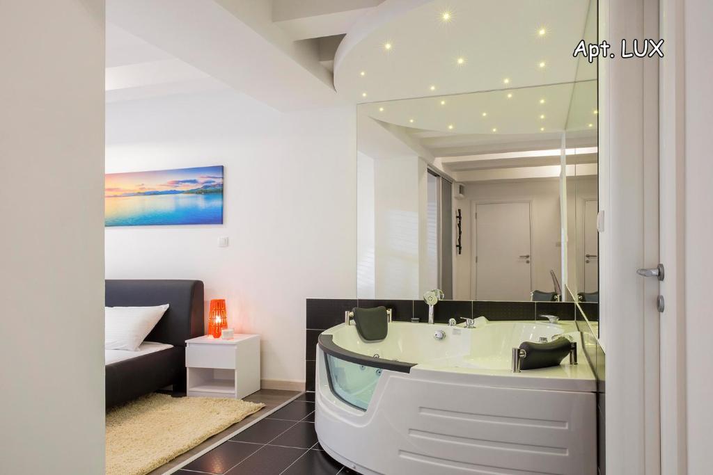 The hot tub is the standout feature of this apartment. This apartment features 1 living room, 1 separate bedroom and 1 bathroom with a bath and free toiletries. The well-equipped kitchen features a stovetop, a refrigerator, kitchenware and an oven. This apartment is air-conditioned and has a seating area with a flat-screen TV, a washing machine, a minibar, a tea and coffee maker, as well as a dining area. The unit has 2 beds.