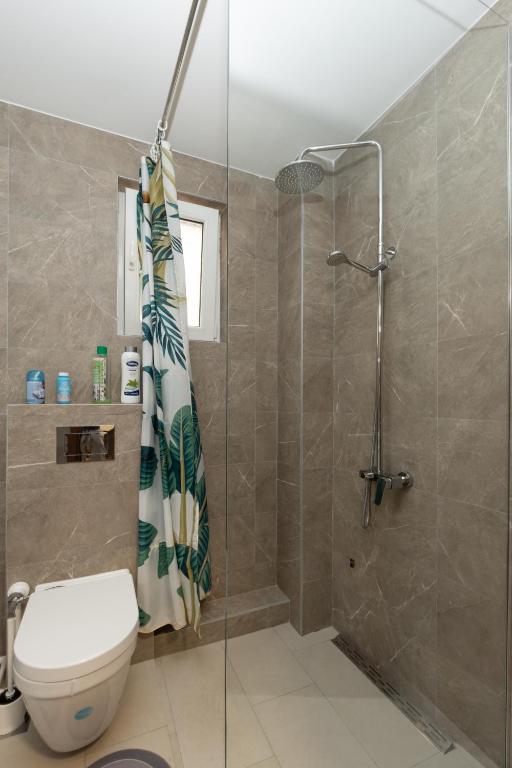 Featuring a private entrance, this air-conditioned apartment consists of 1 living room, 2 separate bedrooms and 1 bathroom with a shower and a bidet. Guests can make meals in the kitchen that is equipped with a stovetop, a refrigerator, a dishwasher and an oven. Boasting a terrace with garden views, this apartment also provides a tea and coffee maker and a flat-screen TV with cable channels. The unit offers 3 beds.