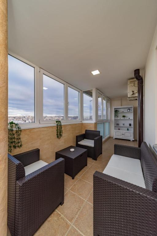 Guests can make meals in the kitchen that features a stovetop, a refrigerator, kitchenware and an oven. The spacious air-conditioned apartment features a flat-screen TV, a washing machine, a tea and coffee maker, a seating area as well as city views. The unit has 3 beds.