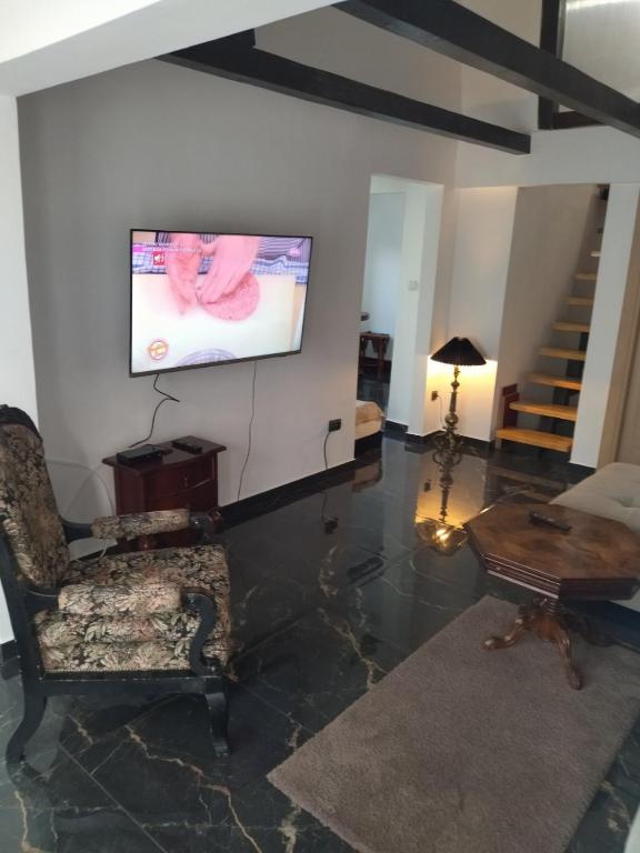 Featuring a private entrance, this air-conditioned apartment comprises 1 living room, 1 separate bedroom and 1 bathroom with a shower. The apartment's kitchen, which features a refrigerator and kitchenware, is available for cooking and storing food. Boasting a terrace with garden views, this apartment also provides a tiled floor and a flat-screen TV. The unit offers 2 beds.