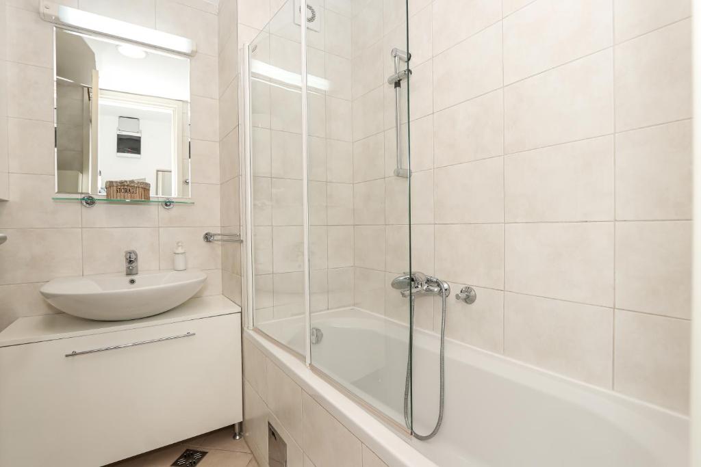 The air-conditioned apartment features 1 bedroom and 1 bathroom with a bath and a bidet. Meals can be prepared in the kitchen, which is equipped with a stovetop, a refrigerator, a dishwasher and kitchenware. The apartment provides a washing machine, a seating area, a dining area, an electric kettle, as well as a flat-screen TV. The unit offers 2 beds.