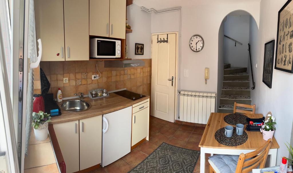 frižider, mikrotalasna rerna, kuhinja, električno kuvalo, posuđe, ploča za kuvanje, sredstva za čišćenje, sto za ručavanje, čaše za vino