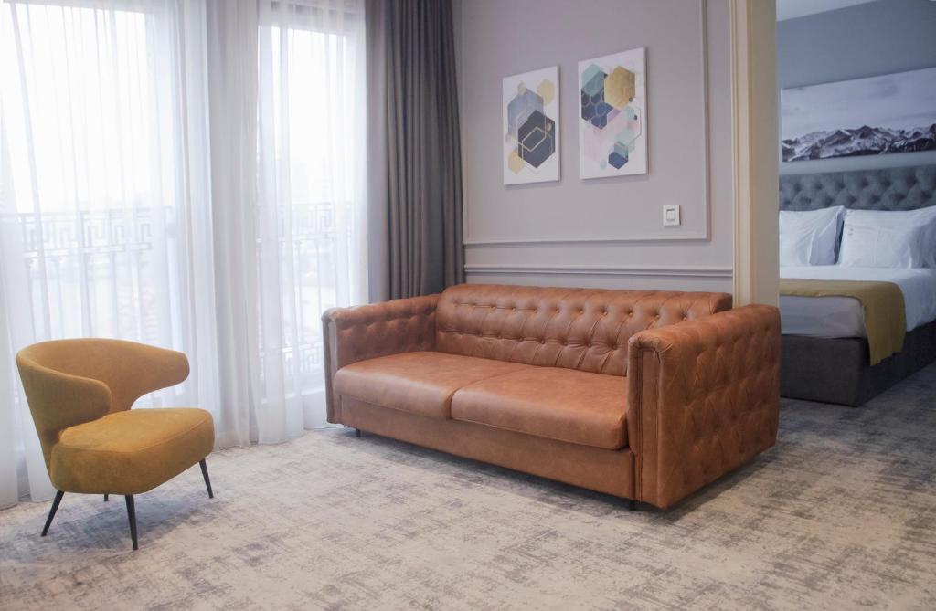 Featuring a private entrance, this air-conditioned suite is comprised of 1 living room, 1 separate bedroom and 1 bathroom with a walk-in shower and a hairdryer. The suite's kitchenette, which features a stovetop, is available for cooking and storing food. The suite offers a flat-screen TV with cable channels, soundproof walls, a minibar, a tea and coffee maker as well as city views. The unit offers 3 beds.