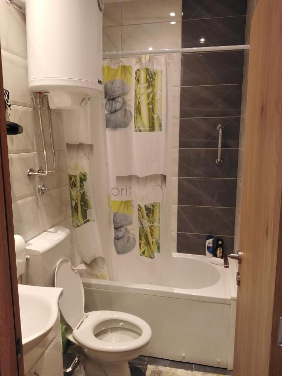 kada, fen za kosu, zajedničko kupatilo, toalet, peškiri, toalet papir, šampon, sapun za telo