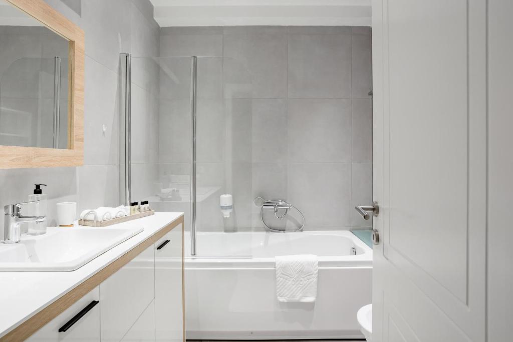 The hot tub is a top feature of this apartment. Boasting a private entrance, this air-conditioned apartment comes with 1 living room, 2 separate bedrooms and 2 bathrooms with a walk-in shower and a bath. The well-equipped kitchen features a stovetop, a refrigerator, kitchenware and a toaster. The apartment has parquet floors, a seating area with a flat-screen TV with cable channels, a tea and coffee maker, a dining area, as well as a wardrobe. The unit has 3 beds.