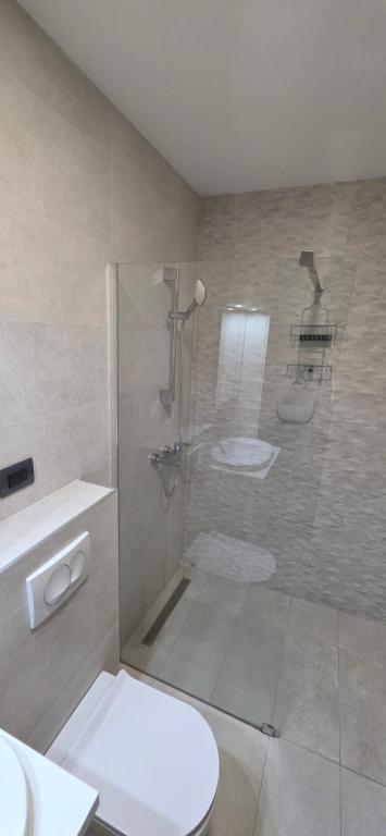 tuš, toalet, kada ili tuš, peškiri, toalet papir, tuš bez praga, šampon, sapun za telo