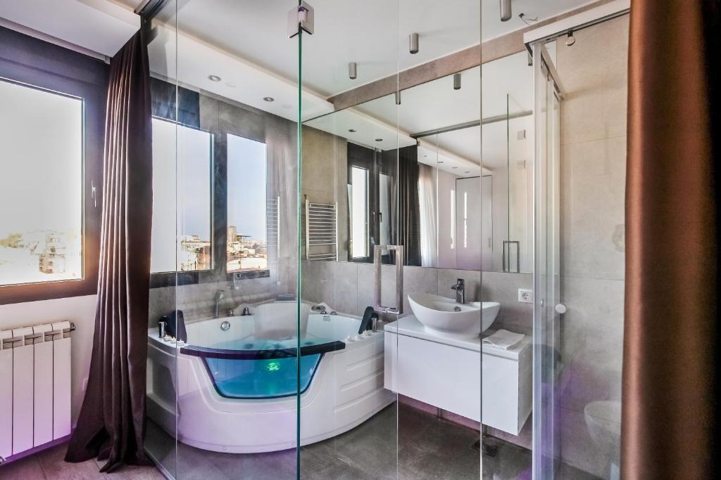 The hot tub is the standout feature of this apartment. Boasting a private entrance, this air-conditioned apartment comes with 1 living room, 1 separate bedroom and 1 bathroom with a bath and a shower. In the well-equipped kitchen, guests will find a stovetop, a refrigerator, a dishwasher and kitchenware. Featuring a terrace with garden views, this apartment also features a tea and coffee maker and a flat-screen TV. The unit has 1 bed.