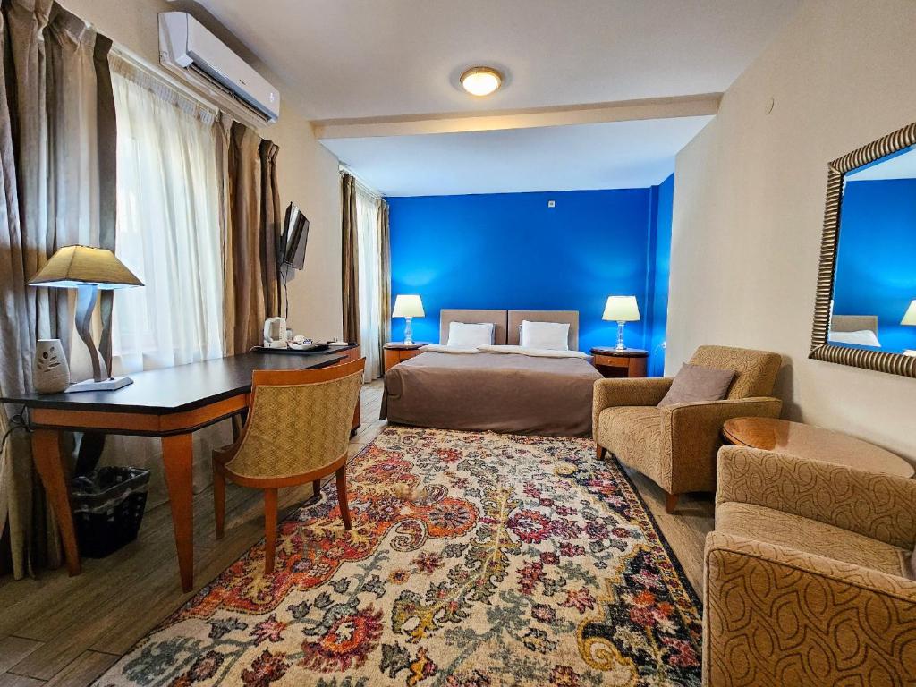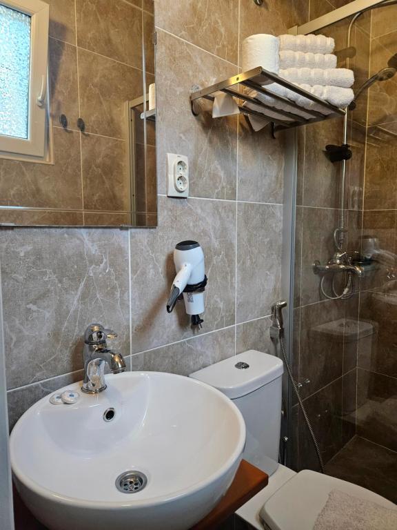 tuš, fen za kosu, besplatni toaletni pribor, toalet, papuče, kada ili tuš, peškiri/posteljina (uz doplatu), bide, peškiri, toalet papir, šampon, sapun za telo, kapa za tuširanje