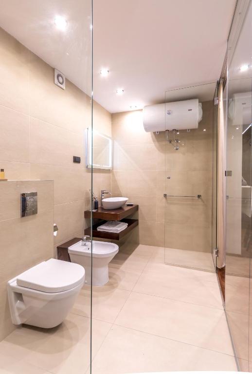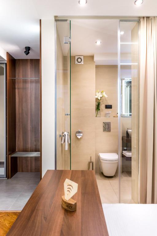tuš, fen za kosu, bademantil, besplatni toaletni pribor, toalet, kada ili tuš, bide, peškiri, toalet papir, tuš bez praga, četkica za zube, šampon, balzam za kosu, sapun za telo, kapa za tuširanje, papuče