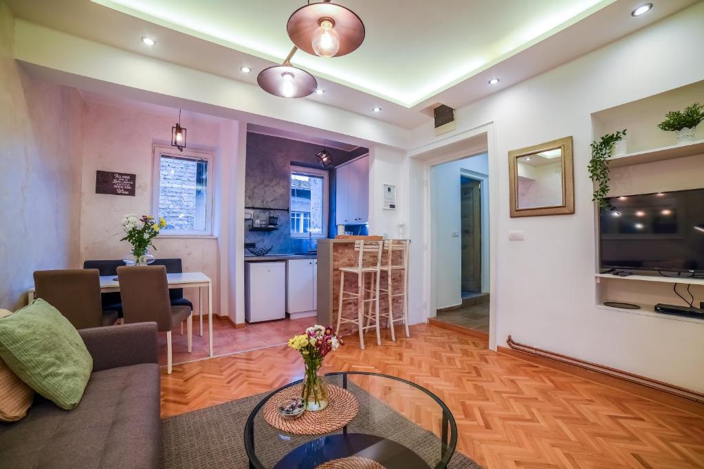 Featuring a private entrance, this air-conditioned apartment comprises a kitchen, 1 bedroom and 1 bathroom with a shower and a hairdryer. Meals can be prepared in the kitchen, which comes with a stovetop, a refrigerator, kitchenware and a microwave. The apartment provides a flat-screen TV with cable channels, a tea and coffee maker, a dining area, a wardrobe as well as garden views. The unit offers 1 bed.