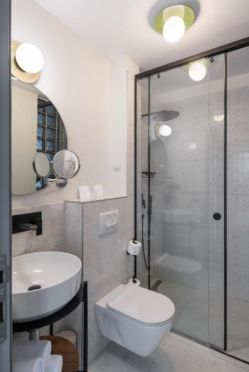 tuš, fen za kosu, bademantil, besplatni toaletni pribor, toalet, papuče, kada ili tuš, dodatni toalet, peškiri, toalet papir, četkica za zube, šampon, balzam za kosu, sapun za telo, kapa za tuširanje
