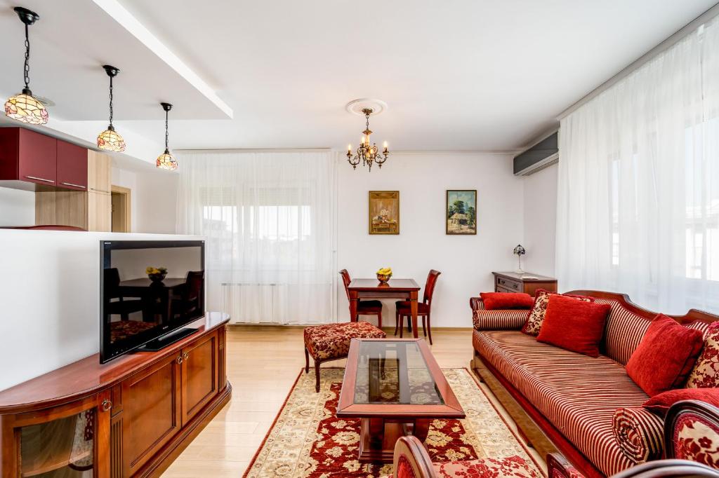 The fully equipped kitchen features a stovetop, a refrigerator, kitchenware and an oven. The air-conditioned apartment provides a flat-screen TV, a private entrance, a tea and coffee maker, a seating area as well as city views. The unit offers 2 beds.