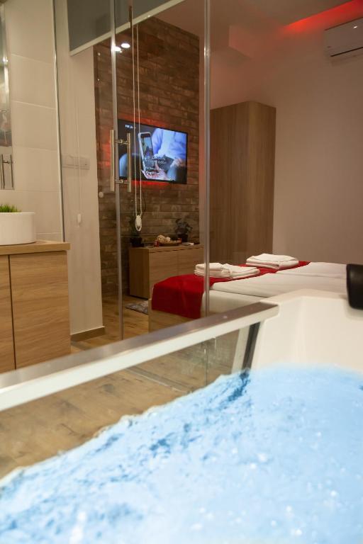 Guests will have a special experience as this apartment provides a hot tub. Featuring a private entrance, this air-conditioned apartment is comprised of 1 bedroom and 1 bathroom with a bath and a hairdryer. The apartment offers soundproof walls, a wardrobe, a tiled floor, a carpeted floor and a flat-screen TV with cable channels. The unit offers 1 bed.