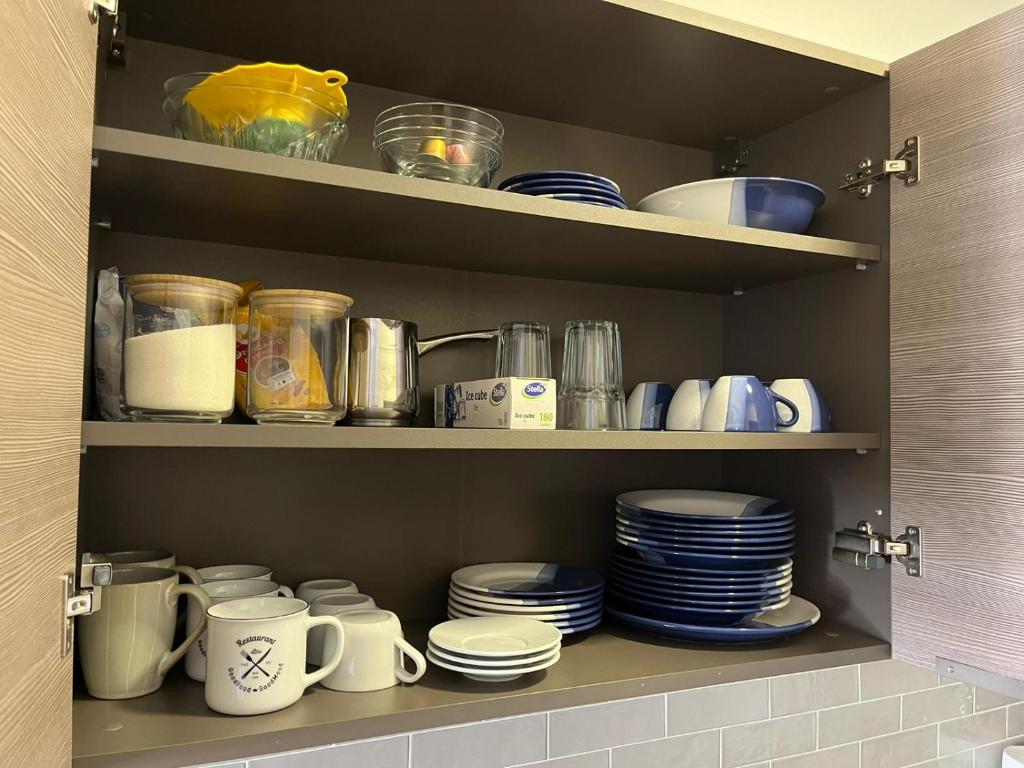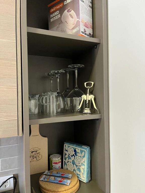 frižider, mašina za pranje sudova, mašina za pranje veša, kuhinja, električno kuvalo, posuđe, rerna, ploča za kuvanje, sredstva za čišćenje, aparat za kafu, sto za ručavanje, čaše za vino