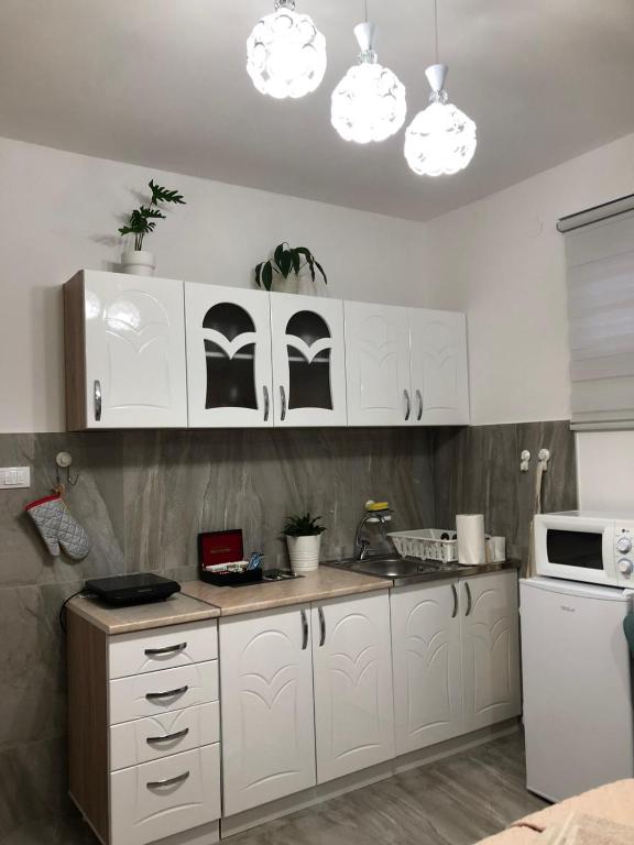 frižider, mikrotalasna rerna, mašina za pranje veša, kuhinja, električno kuvalo, posuđe, ploča za kuvanje, sredstva za čišćenje, sto za ručavanje, čaše za vino