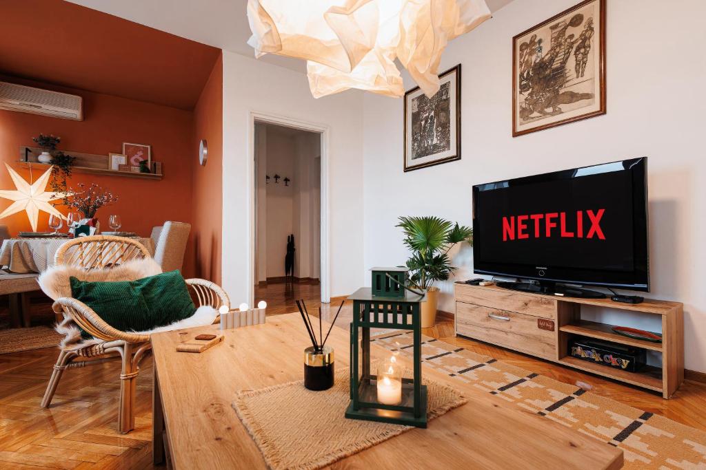 flat-screen TV, usluge strimovanja (kao što je Netflix), TV