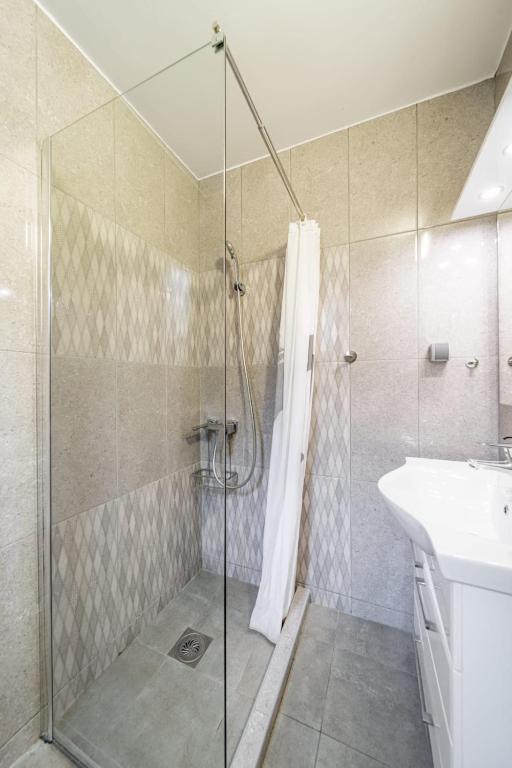 This apartment's standout feature is the fireplace. In the well-fitted kitchen, guests will find a stovetop, a refrigerator, a dishwasher and kitchenware. This apartment is air-conditioned and features a seating area with a flat-screen TV, a washing machine, tumble dryer, a sofa, as well as parquet floors. The unit offers 2 beds.