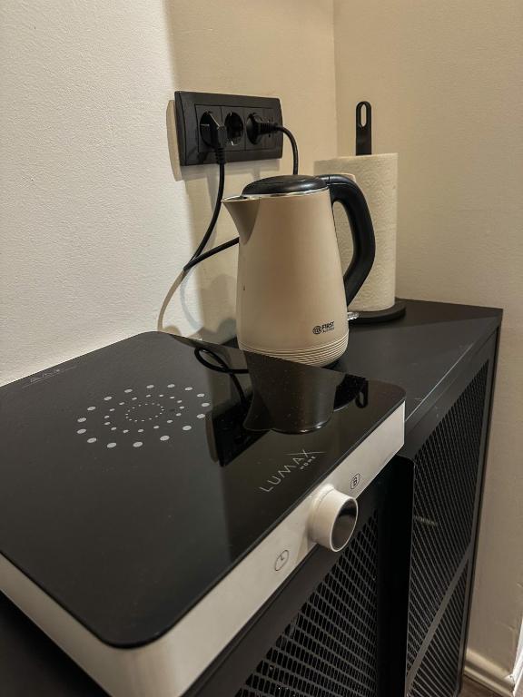 aparat za kafu/čaj, flaša vode, čokolada ili keks