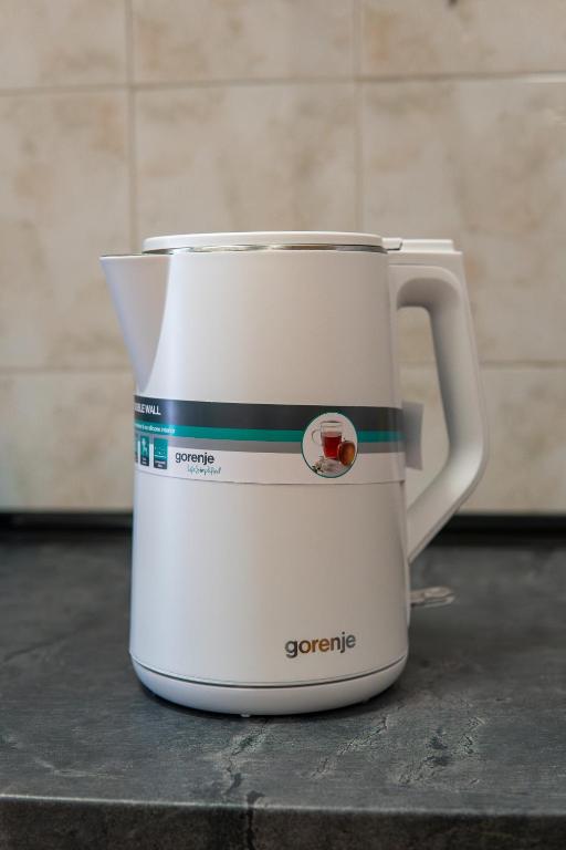 frižider, kuhinja, električno kuvalo, posuđe, rerna, ploča za kuvanje, sto za ručavanje, čaše za vino