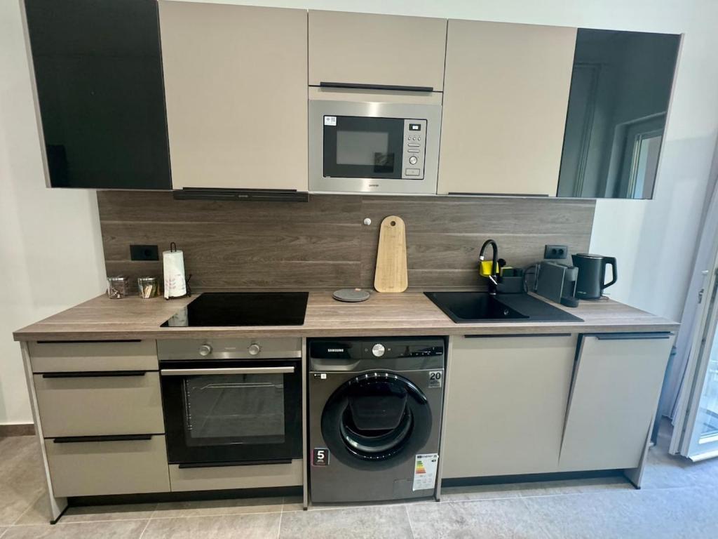 The apartment's kitchen is available for cooking and storing food. The spacious apartment features air conditioning, a washing machine, heating, as well as a flat-screen TV. The unit has 2 beds.